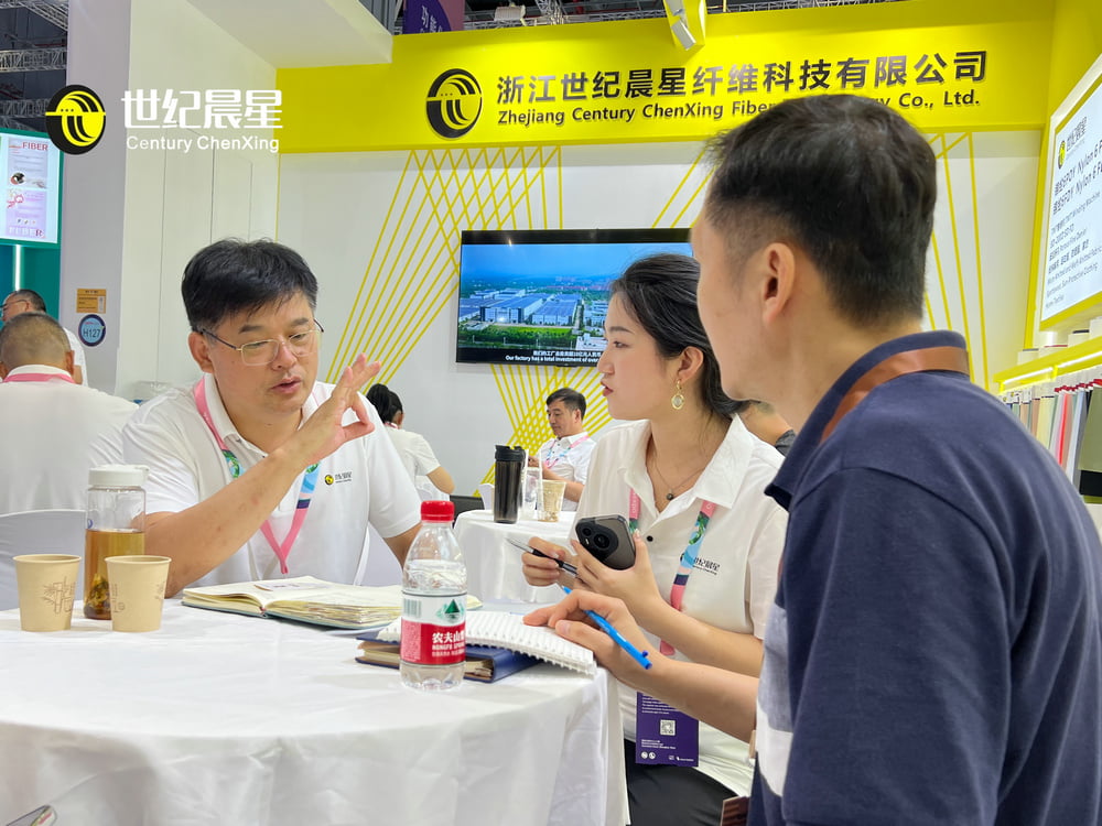 At the exhibition booth, in-depth dialogues between the technical team and purchasers became another highlight. From discussing how the molecular structure of raw materials affects the handfeel of finished products to how optimizing spinning processes reduces overall costs, Century Chenxing adopted a dual-drive approach of "technology + service" to translate professional capabilities into customer value. The bustling crowd behind the scenes reflected long-term market recognition of "stable quality and efficient service," as well as the inevitable response to the company's demand-oriented and innovation-driven approach.